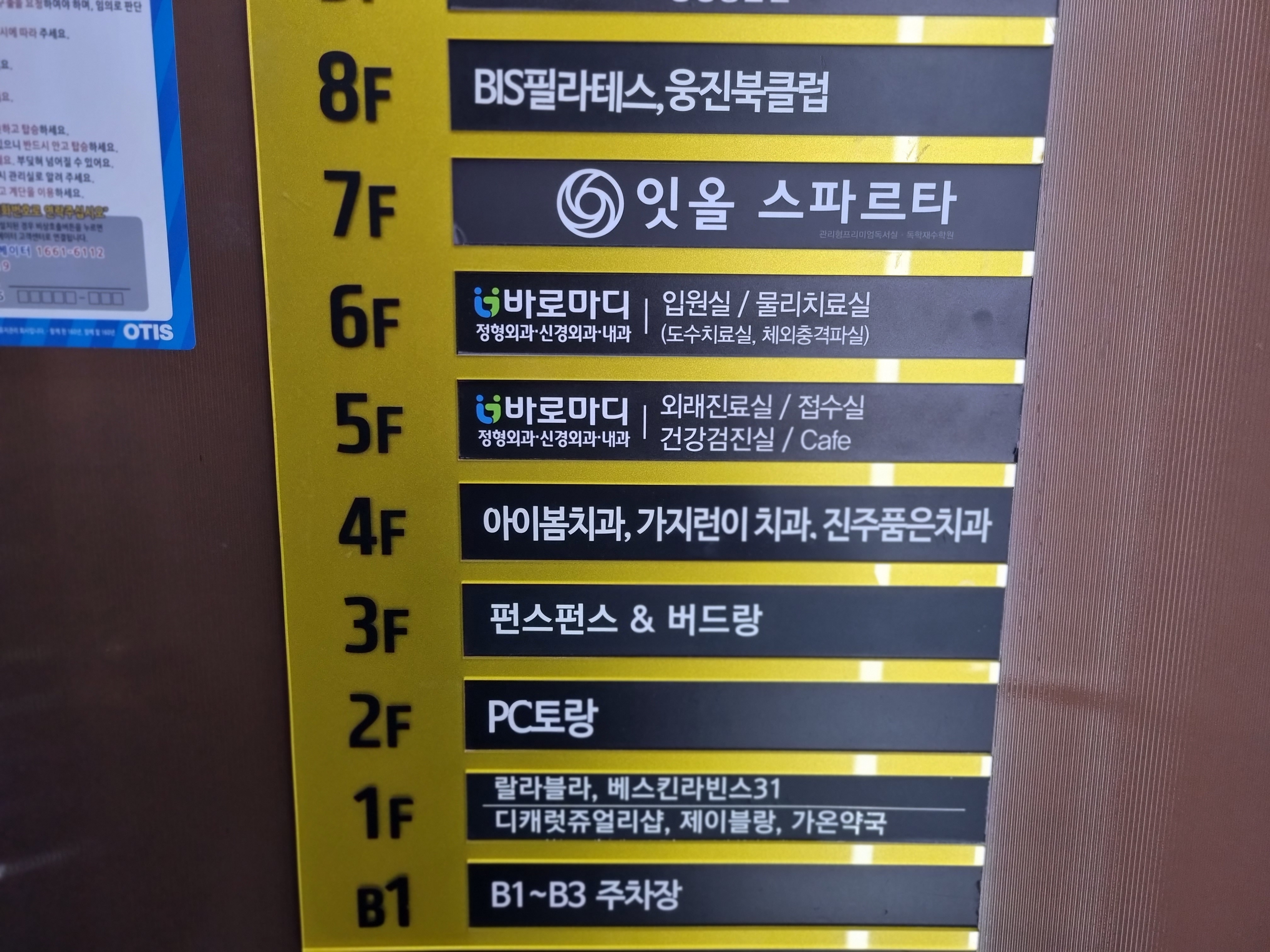오른쪽은 이봄치과, 왼쪽은 일반치과 그리고 복도 끝 가느는치과.