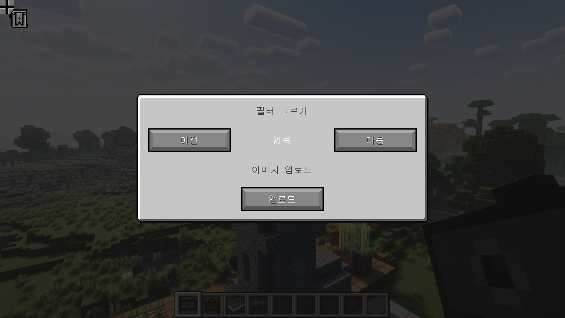 카메라를 손에 들고 Shift + 오른쪽 클릭 – 필터를 변경할 수 있으며 이미지를 업로드할 수 있습니다.